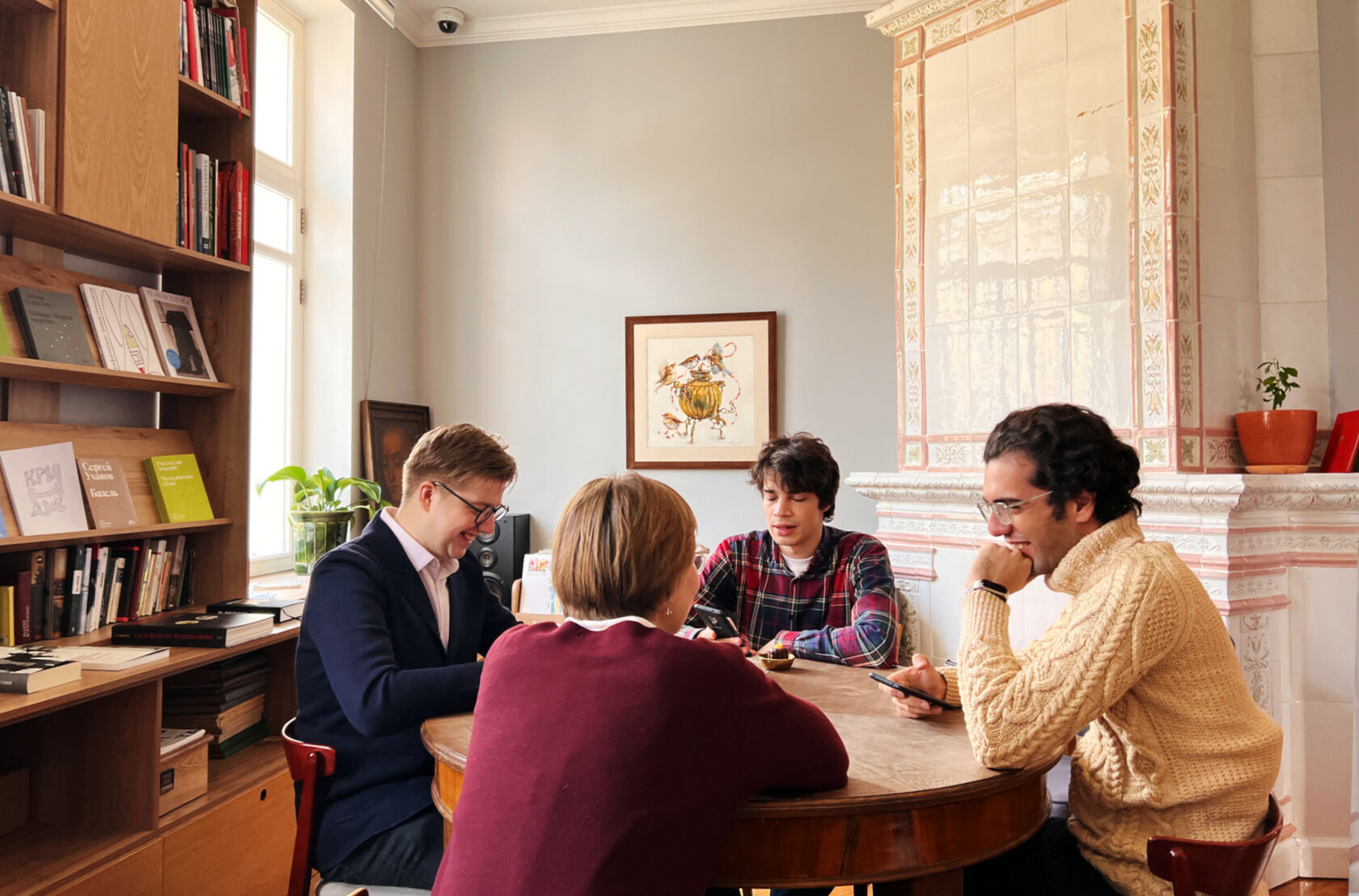 В наш универсум входит и литература, и живопись, и архитектура, даже гастрономия. Это нитка, на которую можно нанизывать бусины русской культуры. Абсолютно любые. Наша главная картина в чайной — где воробьи собирают рассыпанные бусы на одну нить — это прямая метафора про нас.