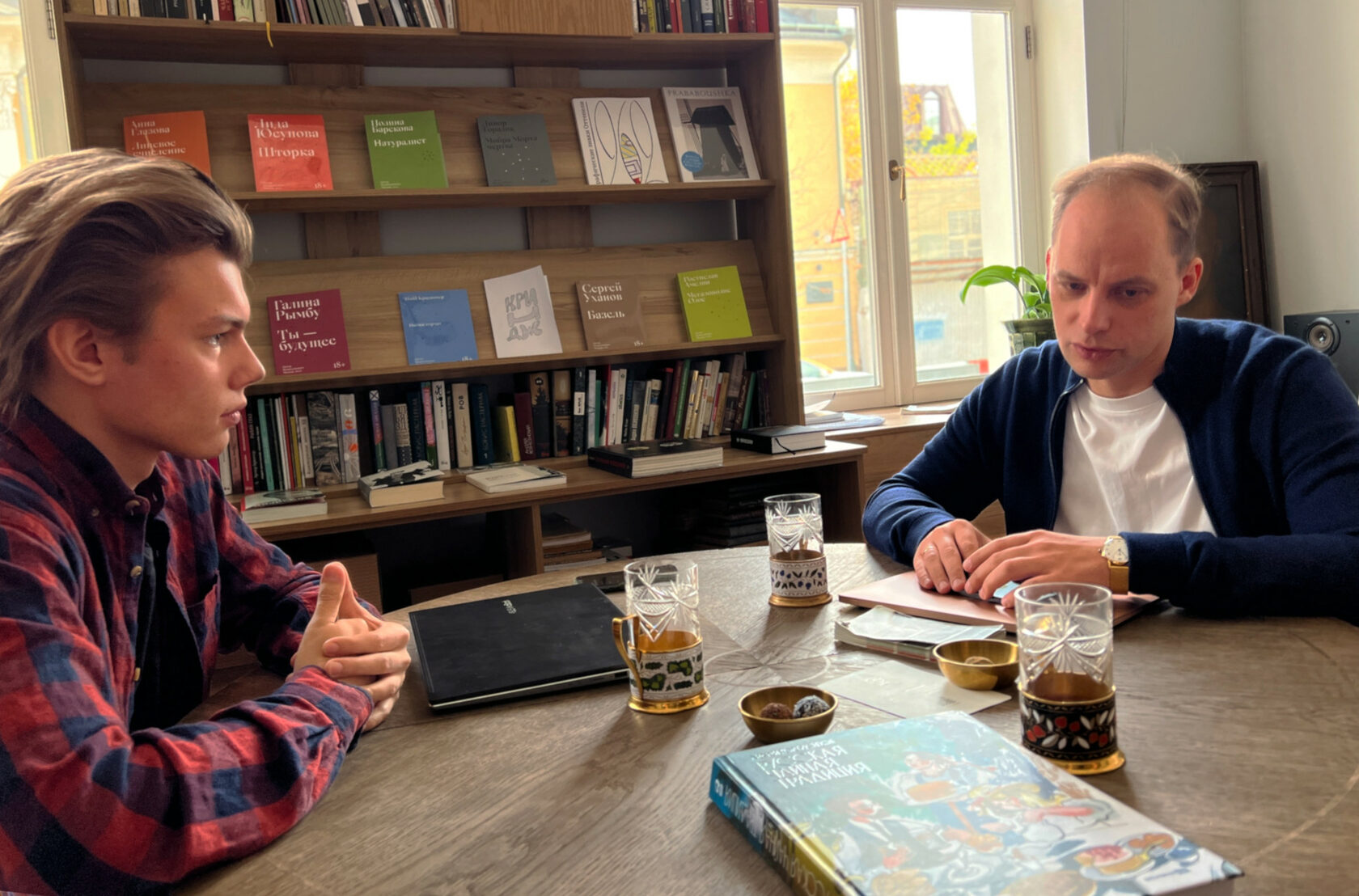 Мы договорились встретиться в «Нитке» в Центре Андрея Вознесенского утром. С нашим приходом заварился первый купаж классического русского каравана. Андрей посадил редактора «Ковра» Даниила Жданова напротив себя — беседа началась.